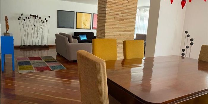 amoblado, remodelado, area 185 mts, primer piso alto exterior, tres habitaciones con baño, hall de alcobas, sala comedor, estudio, baño social, cocina cerrada con comedor auxiliar, zona de lavanderia, cuarto y baño de servicio, dos parqueaderos, depósito, edificio con salon comunal con baños y cocina, ascensores renovados, parqueaderos para visitantes, portería 24 horas. canon incluida la administracion y muebles. apts c-dos