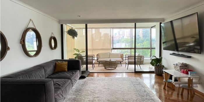 Apartamento AMOBLADO en arriendo ubicado en el sector de Provenza, cerca de centros comerciales, restaurantes y supermercados, buena ruta de transporte y facil acceso vehicular. Piso en Madera, hall de acceso, sala, comedor,biblioteca, 4 habitaciones, 3 baños, alcoba mas baño del servicio, cocina integral tipo americano, zona de ropas, 3 parqueaderos mas un cuarto util. Unidad con vigilancia las 24 horas, circuito cerrado de tv, piscina, zonas verdes.