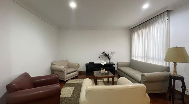 Apartamento AMOBLADO en arriendo cerca a hospitales, supermercados, colegios, restaurantes, canchas, rutas de transporte público y servicios complementarios. Piso en madera y mármol, puerta de seguridad, sala comedor, estar de TV, 3 alcobas con vestier y baño en la principal, baño social, tina, cocina integral cerrada, alcoba y baño de servicio, zona de ropas y parqueadero independiente cubierto Conjunto cerrado con ascensor salón social, parques infantiles, zonas verdes, vigilancia y portería 24 horas y circuito cerrado de TV. inmuebles sujetos a verificacion de disponibilidad