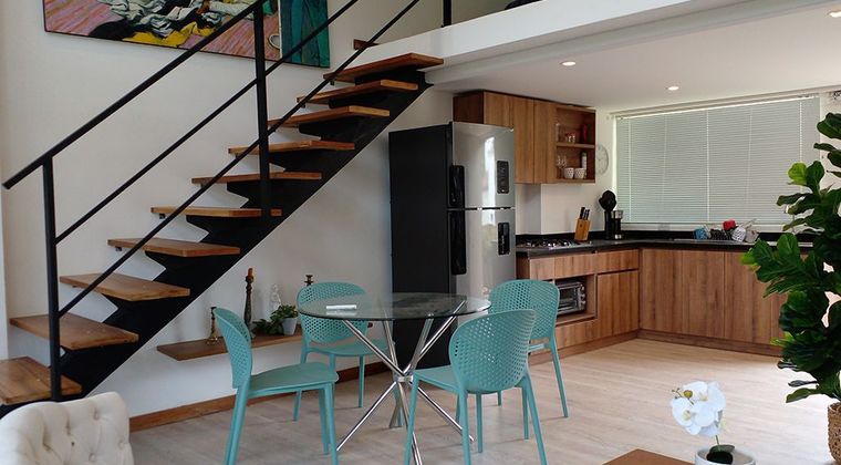 Apartaestudio amoblado en arriendo en unidad cerrada en sector tranquilo, campestre, y poco flujo vehicular. Piso en madera laminada, sala comedor, 1 alcoba con baño privado, baño social, cocina integral abierta tipo americano, balcon y parqueadero cubierto. Conjunto cerrado con ascensor, y circuito cerrado de tv. *Inmuebles sujetos a verificación de disponibilidad.*