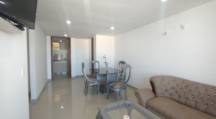 Apartamento amoblado en arriendo en El Tabor, ubicado en unidad cerrada cerca a supermercados, restaurantes, parques, rutas de transportes publico. Cuenta con 3 habitaciones, 2 baños, sala-comedor, estar de tv, pisos en porcelanato, estufa, campana y hornos empotrados, cocina integral con mesón en granito, zona de ropas. En conjunto cerrado zonas verdes, salon comunal, piscina, vigilancia y porteria 24 horas.