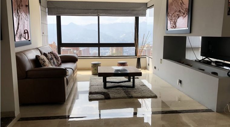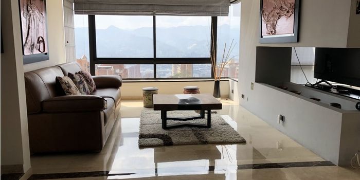 Se arrienda apartamento Amoblado, cerca al tesoro, Área 315 metros, 3 alcobas cada una con baño, la principal con vestier y un closet, las 2 auxiliares con baño, y closet, alcoba de servicio, baños social, balcón, comedor, estudio, biblioteca, zona de ropas, cocina integral abierta, closet de linos, 3 parqueaderos y cuarto útil. Portería 24 horas, parque infantil.