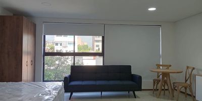 Apartaestudio tipo loft exterior amoblada en arriendo cerca a supermercados, estacion de metro, parques, restaurantes, rutas de transporte publico y servicios complementarios. Piso en ceramica, 1 espacio, baño privado, cocina integral. Edificio con ascensor, lavanderia, vigilancia 24 hrs. *Inmuebles sujetos a verificación de disponibilidad.*