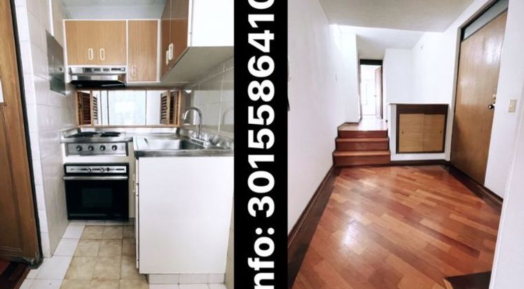 De niveles: hall de entrada piso en madera, sala comedor cocina integral en el primer nivel, En el segundo nivel: estudio con piso en madera bańo y alcoba entapetada; garaje cubierto , celaduría 24 horas.