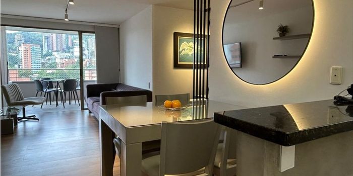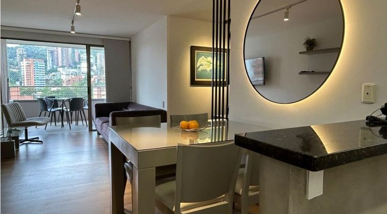 APARTAMENTO AMOBLADO UBICADO EN LA MEJOR ZONA DEL POBLADO. Conecta facil a Provenza, La 10, El Tesoro, Vizcaya. Excelente ubicacion cerca a todo: restaurantes, gimnasios, peluquerias, supermercados, cajeros y bancos. Muy buenas rutas de trasnporte publico. Esta totalmente dotado, lenceria de camas, dotacion y menaje de cocina, y un espectacular mobiliario. - Metros: 75 mts² - 2 alcobas. - 1 alcoba de servicio. - Sala comedor. - Cocina abierta. - 1 Balcón amplio. - 1 Estudio. - 2 baños con luz natural. - 1 baño para la empleada. - 1 Parqueadero para vehículo y moto. - 1 Cuarto útil. Nota: El edificio tiene ascensores Mitsubishi, piscina de adultos y niños, juegos infantiles, salón social, parqueaderos de visitantes, porteria y vigilancia 24 horas Nota: Se incluye servicios de: $ 200.000 + internet.
