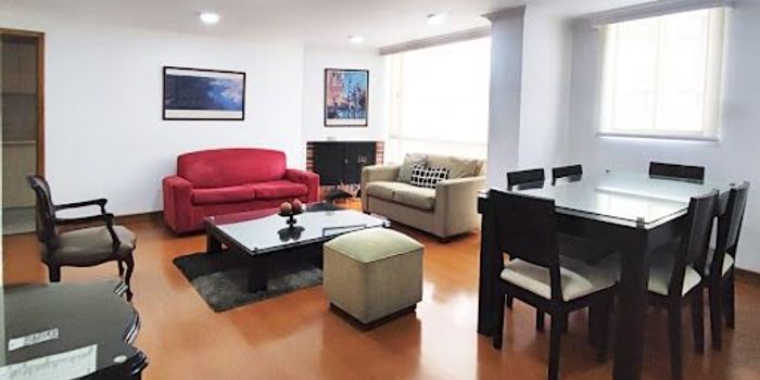 Arriendo Apartamento amoblado, exterior con luz natural, . cuarto piso, Estrato seis, dos habitaciones, tres baños, Cuarto y baño de servicio, sala-comedor, Cocina integral, Parqueadero doble, Zona de lavandería, Pisos en madera laminada, totalmente dotado, Gimnasio, servicio de vigilancia veinticuatro siete.