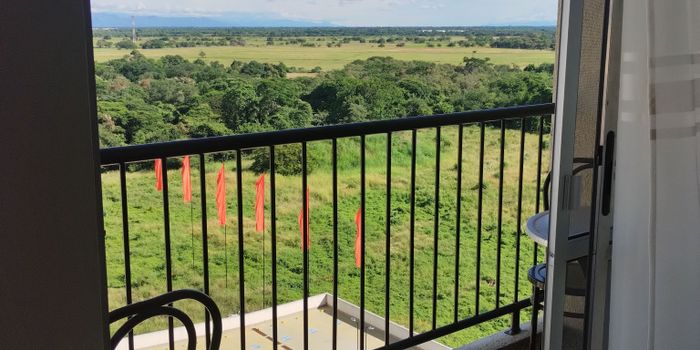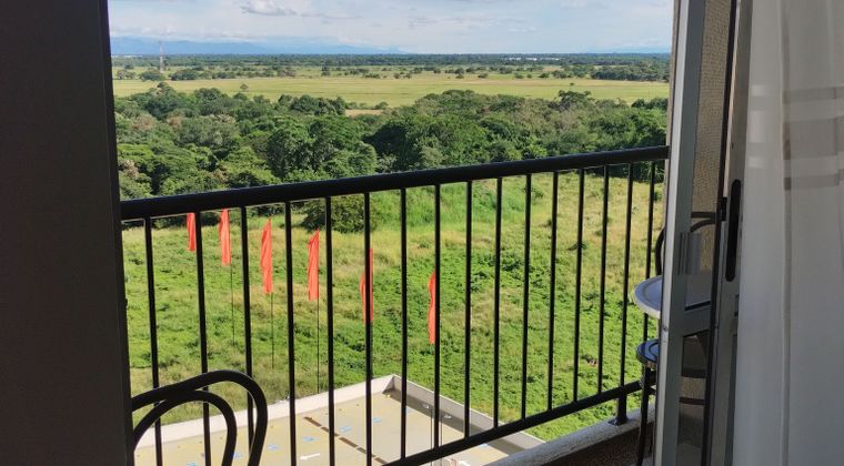 Hermoso apartamento piso 12 con ascensor, 2 alcobas , 2 baños , estudio abierto, sala comedor con balcón , cocina integral con gas natural y barra tipo americana, zona de lavandería y derecho a un garaje comunal. Excelentes acabados . Vista a la sabana de Girardot. Conjunto muy tranquilo y seguro , vigilancia 24 horas, piscinas , parque infantil , BBQ , salón comunal y Gimnasio, detrás del conjunto queda la base militar.