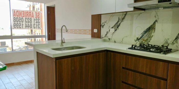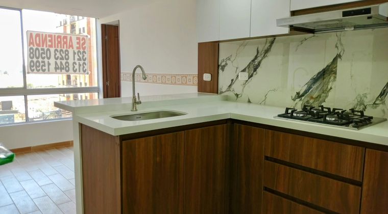 Apartamento en arriendo en el barrio La Felicidad, 39 Mtrs, quinto piso con ascensor, 1 habitación con baño privado y closet, estudio cerrado, baño social, sala coedor, cocina integral abierta y zona de lavandería. Parqueadero comunal. El conjunto cuenta con portería 24 horas, 2 salones sociales, parqueadero de visitantes. Cerca al centro comercial Multiplaza, Los tres Elefantes, C.C. Hayuelos, Tugó. Vías de acceso: Av Boyacá, Av La esperanza, Av Ciudad de Cali, Calle 13 y 17. Precio incluye valor de la administración.