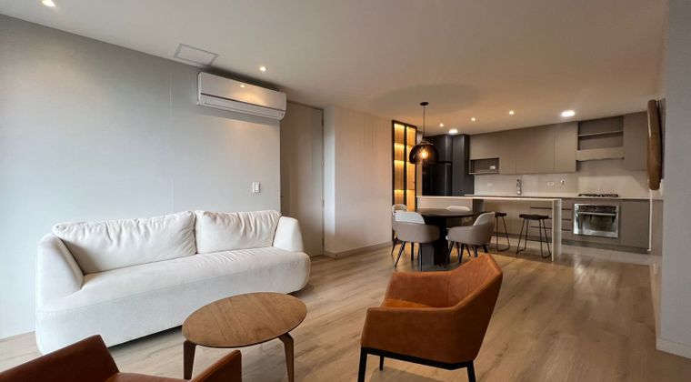 Apartamento AMOBLADO en arriendo en unidad cerrada ubicación de gran desarrollo urbanístico, con acceso desde vía principal, con conexión a rutas de trasporte público y servicios complementarios del sector. Piso en madera, sala comedor, 3 alcobas con vestier y baño en la principal, baño social, cocina integral abierta tipo americano, zona de ropas, balcón, útil y parqueaderos lineales cubiertos Conjunto cerrado con ascensor, piscina, gimnasio, salón social, parques infantiles, zonas verdes, vigilancia y portería 24 horas y circuito cerrado de TV. inmuebles sujetos a verificacion de disponibilidad