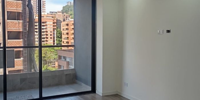 Apartamento de 2 alcobas, cada una con closet, 2 baños, cocina integral, estufa con extractor y horno, calentador, barra, sala, comedor, balcón, zona de ropas, 79 mtrs2, estrato 6, piso 9, parqueadero, cuarto útil, zonas comunes; salón social, gimnasio, parque infantil.