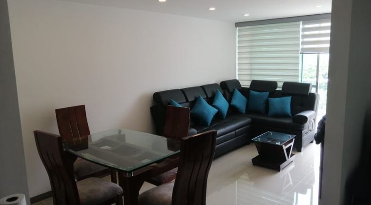 APARTAMENTO AMOBLADO, HACIENDA EL CORTIJO, ZONA EXCLUSIVA NORTE DE LA CIUDAD, PRECIOSO, COMPLETAMENTE DOTADO, HERMOSA VISTA PANORÁMICA PAISAJE CULTURAL CAFETERO, DOS BALCONES, CLUBHOUSE, ZONAS VERDES, PISCINAS, JACUZZI, GIMNASIO, SALA DE JUEGOS, SENDERO ECOLÓGICO, DOS HABITACIONES, ESTUDIO, DOS BAÑOS, GARAJE CUBIERTO, OPCIÓN SEGUNDO GARAJE, DÉCIMO PISO, DOS ASCENSORES, CERCA CENTROS COMERCIALES, SUPERMERCADOS, VIGILANCIA PERMANENTE, RECEPCIÓN CON LOBBY.