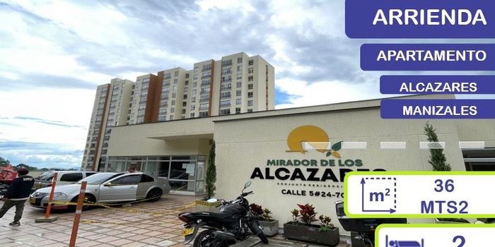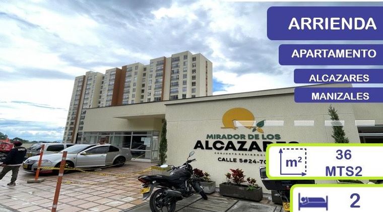 ALCAZARES, MANIZALES - ARRENDAMIENTO En el conjunto Mirador de los Alcázares, contamos con un apartamento en un séptimo piso, el cual consta de dos (2) habitaciones, un (1) closet, un (1) baño, cocina integral, salacomedor, zona de ropas, pisos en cerámica, parqueaderos en zonas comunes y ascensor. El conjunto cuenta con cancha múltiple, sendero, zona de juegos, salón social, vigilancia privada las 24 horas; con cercanía a este encuentra panaderías, restaurantes, gimnasios, tiendas, transporte público, entre otros.