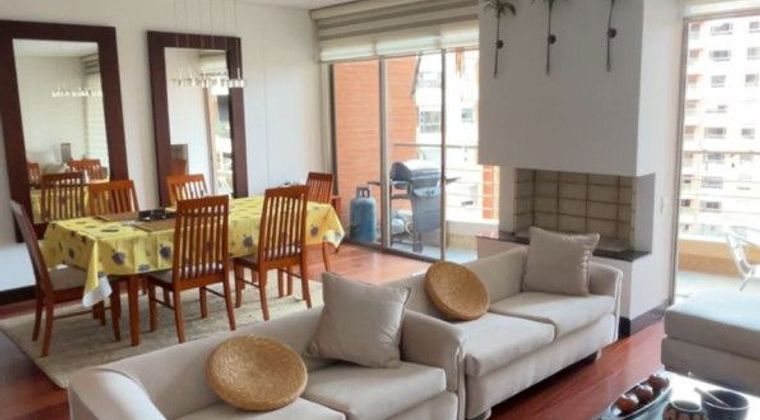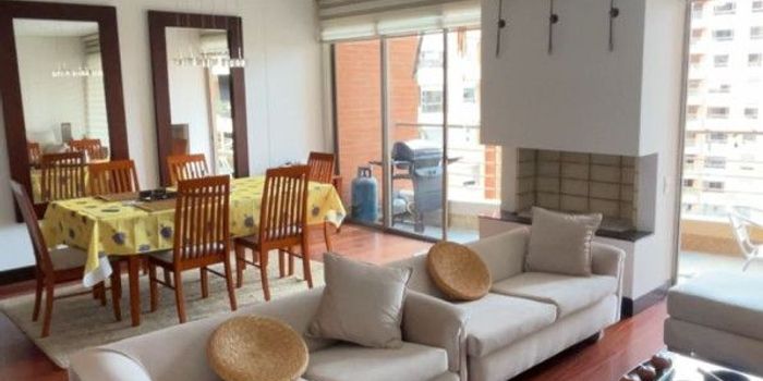 Reserva de la sierra en arriendo, hermoso apartamento amoblado iluminado con lindos y finos acabados de tres habitaciones cada una con baño, la principal con walking closet, linda cocina abierta con lavandería independiente y baño para empleada, sala comedor independiente con chimenea y balcón, dos parqueaderos independientes y deposito, caldera, club house, piscina, turco, sauna, squash, GYM, teatrino, salón de juegos, parques para niños, cancha de tenis, administración incluida en el arriendo
