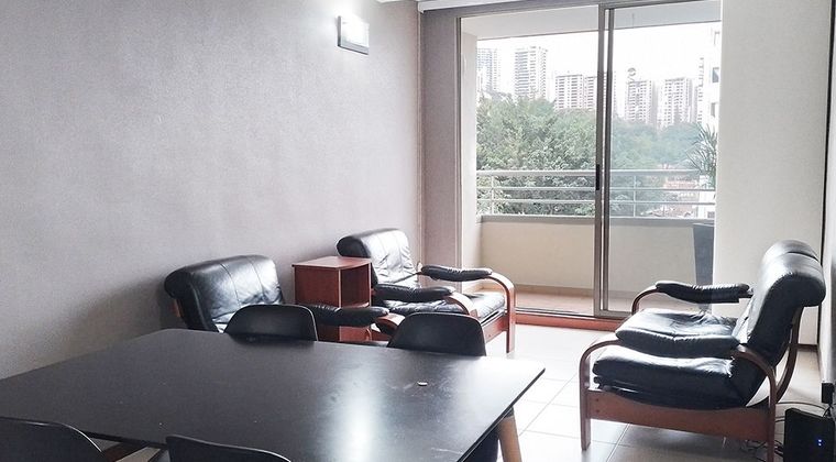 Apartamento amoblado en arriendo en unidad cerrada sobre la Inferior a dos cuadras del Mall Piazza Bella. Rutas de transporte publico y gran variedad de servicios complementarios. Piso en ceramica, puerta de seguridad, sala comedor, 2 alcobas con baño en la principal, cocina integral cerrada, balcon y parqueadero cubierto. Piscina, sauna, parque infantil, zonas verdes, vigilancia 24 horas, citofonia y circuito cerrado de tv. *Inmuebles sujetos a verificación de disponibilidad.*