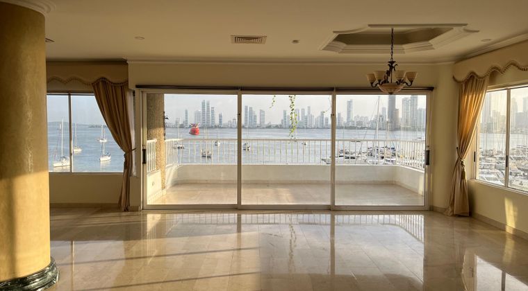 Apartamento de 250 m en la bahia de Manga y con vista al mar. Tres habitaciones con baño completo, habitación de servicio con baño, baño social, zona social con bar y terraza 2 parqueaderos cubiertos.