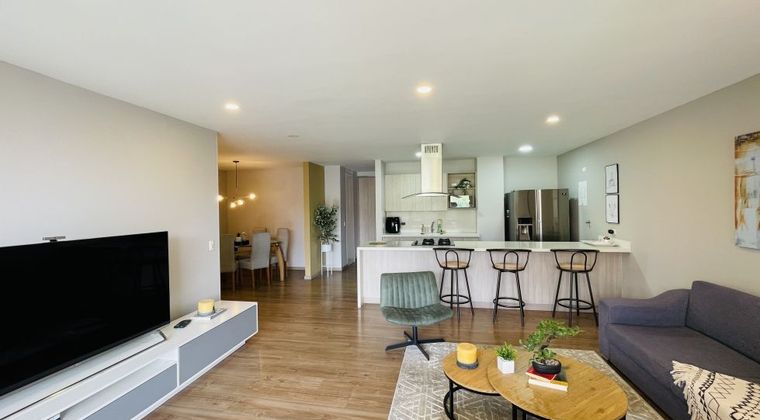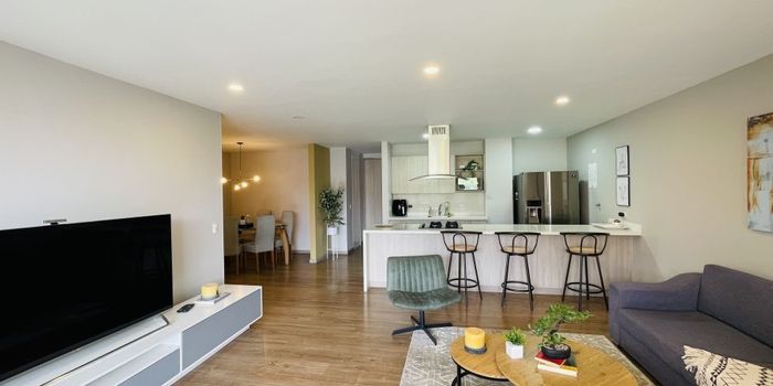 Excelente apartamento amoblado para alquiler en el sector de la avenida del poblado por la frontera. Es moderno y tiene 140 metros, 3 hbaitaciones, 3 baños, cocina abierta, balcon y unidad completa