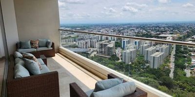 APARTAMENTO AMOBLADO: Ubicado en Menga, norte de Cali. Área: 176 mts, piso alto. Tiene 3 habitaciones con aire acondicionado, ventilador en techo y baño privado, la principal con vestier. Hall de TV con sofá cama. Amplia sala comedor, Cocina tipo americana totalmente equipada. Zona de oficios full. Cuarto y baño de servicio. Amplio balcón con vista a la ciudad. Cuarto principal y hall con vista a los cerros. 3 parqueaderos y depósito en sótano. Zonas sociales: piscina, jacuzzi, cancha sintética, juegos infantiles, zona BBQ, parque para mascotas y gimnasio.