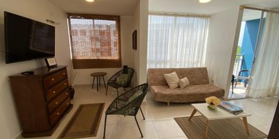 APARTAMENTO AMOBLADO EN ARRIENDO MIRAMAR 61MT2 Dos habitaciones Estudio Dos baños Aire acondicionado Balcón Dos armarios Cortinas Zonas sociales Piscina Planta eléctrica.