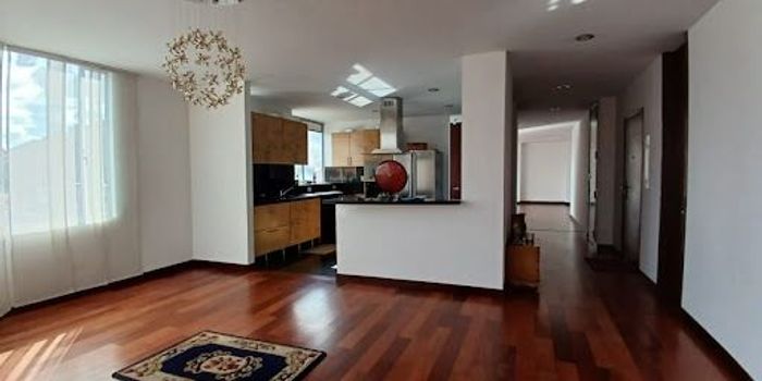 Apartamento dúplex de 243 metros cuadrados, ubicado en el octavo piso, ofrece una espectacular vista panorámica y comodidades de lujo. Con un ascensor privado para mayor exclusividad, cuenta con tres habitaciones completas, cada una con baño y vestidor, además de una habitación adicional que sirve como cuarto de servicio con baño privado. Las escaleras en madera natural añaden un toque elegante. El espacio se distribuye en dos salas de estar y comedor, con balcón y chimenea, ideal para el entretenimiento. Además, dispone de dos terrazas y un balcón. La cocina integral abierta está completamente equipada. Completa esta oferta con dos parqueaderos cubiertos paralelos para la máxima comodidad.