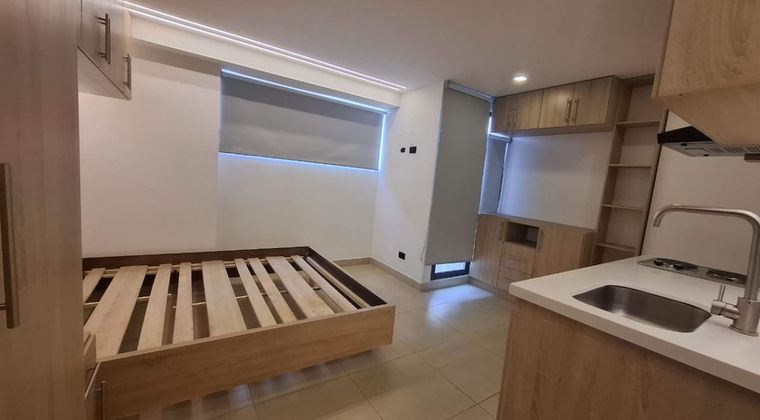 Hermoso Apartaestudio en Paloquemao – 40 m², Acogedor apartaestudio de 40 metros cuadrados, ubicado en el sector de Paloquemao, con excelente iluminación natural y amplios espacios. Cuenta con un solo ambiente que incluye: Cama empotrada (sin colchón), Pisos en madera laminada, Clóset amplio y funcional, Star de TV con mueble incluido, Cocina integral a gas, Baño completo, Un espacio ideal para quienes buscan comodidad, practicidad y una ubicación estratégica en la ciudad. Cod: 5086