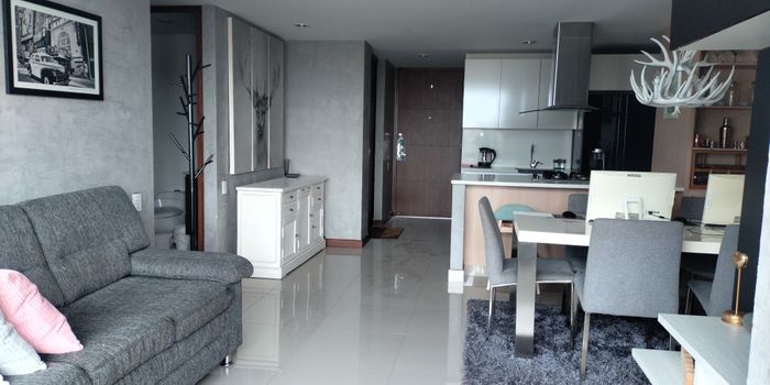 Apartamento AMOBLADO en arriendo en unidad cerrada ubicada en un sector residencial, tranquilo, con fácil acceso y salida a vías principales, rutas de transporte público, con conexión a gran variedad de servicios complementarios de la zona. Cuenta con piso en porcelanato, sala comedor, 2 alcobas con vestier y baño en la principal, baño social, cocina integral abierta tipo americano, zona de ropas, balcón y parqueadero paralelo cubierto. Conjunto cerrado con ascensor y zonas sociales que incluyen piscina, gimnasio, salón social, sauna, turco, parques infantiles, placa polideportiva, zonas verdes, vigilancia y portería 24 horas y circuito cerrado de tv.Inmuebles sujetos a verificación de disponibilidad