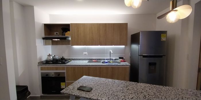 Hermoso apartamento con vista, totalmente iluminado, tres habitaciones, todas con clóset, habitación principal con baño y vestier, baño social, Sala comedor, barra americana, cocina integral, área de ropas independiente, parqueadero cubierto, ascensor, vigilancia 24 horas, zonas verdes, juegos infantiles, Zona de lectura, zona de fogata, co-working, zona BBQ, zona de relajación (Jacuzzi -Turco -Sauna), sala con chimenea, gimnasio, salón de juegos y reuniones, mesa ping pong.
