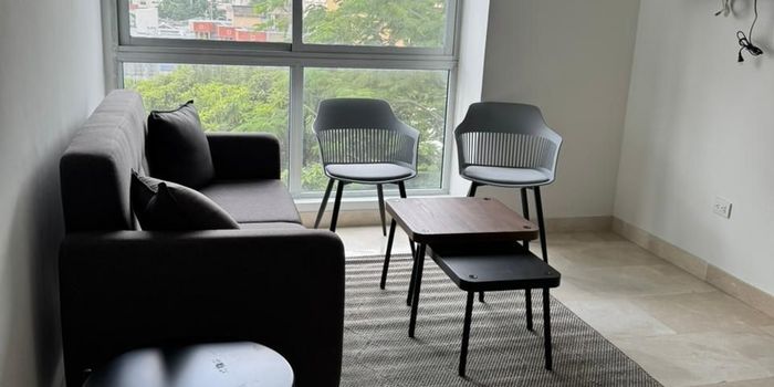 Apartamento amoblado en arriendo en San Vicente, ubicado en unidad cerrada cerca a centros comerciales, supermercados, parques, vías principales. Cuenta con 1 habitación, 2 baños, sala comedor, estar de tv, hall de alcobas, pisos en mármol, cocina integral con mesón en granito, zona de ropas, gimnasio, salón comunal, sauna, turco, zonas verdes, parqueadero asignado, planta eléctrica, vigilancia y portería 24 Horas.