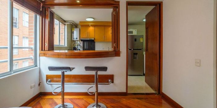 Amplio apartamento amoblado ubicado en Chico Navarra, el apartamento cuenta como zona social en un ambien, baño socia, cocina semi abierta. Una habitación independendiente con baño propio. El apartamento cuenta con un parqueadero independiente. El precio incluye administración.