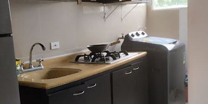Apartamento de 3 alcobas, 2 baños, sala comedor, estudio, cocina integral, zona de labores y parqueadero descubierto, No cuenta con ascensor el edificio, ubicado en conjunto cerrado, portería 24 horas, parque infantil, piscina, cancha múltiple, parqueaderos descubiertos.