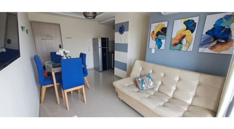 Se Arrienda apartanmento amoblado en sector exclusivo de la ciudad de Cartagena de Indias con hermosa vista, con ubicación cercana a la playa, cuenta con 3 cuartos, 1 baño, aire central, sala comedor, cocina integral, con decoración moderna y un cálido balcón. El edifico cuenta con parqueadero, ascensor, piscina, seguridad privada, portería, citofono y zonas sociales. Administracion incluida. Disponible el 1 de Septiembre de 2.024