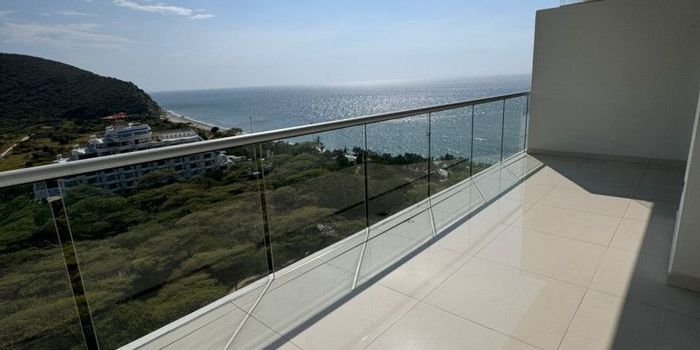 Moderno apartamento con espectacular vista al mar ubicado en Playa Salguero. El apartamento cuenta con amplia zona social con terraza, cocina abierta, baño social (completo con ducha), habitación principal con baño. El apartamento cuenta con dos aires acondicionados, calentador, blackout en la habitación principal y solar screen en la zona social. El apartamento cuenta con un parqueadero. El edificio cuenta con piscina, restaurante, acceso directo a playa con kioscos propios del edificio.