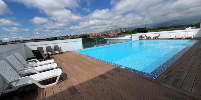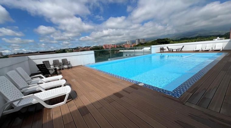 ALQUILO apartamento en ciudad jardín. Consta de sala comedor, balcón, cocina integral, terraza, baño social, 2 habitaciones con baño, closet y aire acondicionado, cuarto de tv con closet, cuarto de aseo, parqueadero doble, zona social en sexto piso y piscina en séptimo piso Info: Edwin Salazar ********** - 315892462