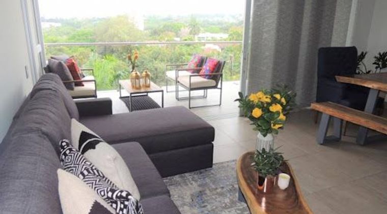 Alquilo hermoso y moderno apto ubicado en ciudad jardín, área 153.52m2. Consta de sala comedor con amplio balcón, cocina abierta con barra, alcoba de servicio, estudio o hall de tv, 3 alcobas cada una con baño privado y otro balcón auxiliar, la principal con vestier y salida al balcón, doble parqueadero en línea y deposito. El conjunto cuenta con zona social en la terraza con piscina, jacuzzi, turco gimnasio, zona húmeda con excelente vista. CITA PREVIA APJ - OL