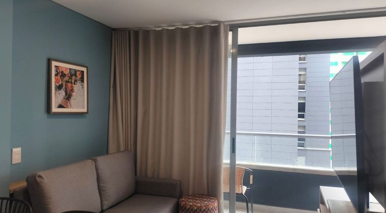 Apartaestudio AMOBLADO en arriendo en unidad cerrada con fácil acceso a vía principal, supermercados, centro comercial, servicio de transporte publico restaurantes y servicios complementarios. Cuenta con piso en porcelanato, sala comedor, estar de tv, 1 alcoba con Vestier, baño privado, baño social, cocina integral abierta tipo americano, zona de ropas, balcón, útil y parqueadero cubierto. Conjunto cerrado con ascensores, piscina, gimnasio, salón social, sauna, turco, parque infantil, placa polideportiva, zonas verdes, vigilancia 24 horas y circuito cerrado de TV. Inmuebles sujetos a verificación de disponibilidad.