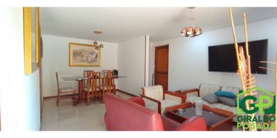80gp30452 Arriendo hermoso apartamento amoblado en Envigado - Otra Parte, Área 120mtrs2, 3 alcobas todas con clóset, la principal con baño, vestier y balcón, baño social, estudio independinete, sala comedor, balcón, cocina integral con red de gas, calentador de paso, zona ropas, piso ceramica, parqueadero cubierto, estrato 4, piso 2. Urbanizaion con porteria 24 horas, piscinas, turco, sauna, gimnasio, salon social, juegos infantiles, cancha sintetica, zonas verdes, sendero verde, plazoleta. Ubicado al frente del colegio santa teresita, cerca al Mall villagrande, la frontera