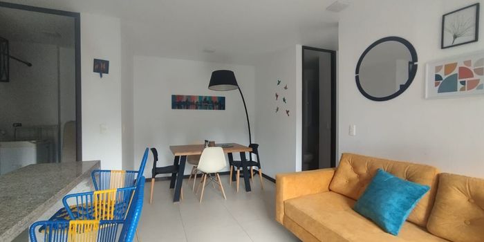 Apartamento para arriendo en unidad cerrada. Ubicado en sector tranquilo con facil acceso y salida a via principal, conexion a rutas de transporte publico. Cuenta con piso en porcelanato y madera, puerta de seguridad, area social con balcon vista externa, sala comedor y cocina integral abierta tipo americano. Tiene 2 alcobas, baño en la principal mas baño social; parqueadero cubierto. Conjunto con ascensor y zonas sociales muy completas que incluyen piscina, gimnasio, salon social, sauna/turco, parque infantil, placa polideportiva, cancha de squash, vigilancia privada, porteria 24 hrs, citofonia, alama y circuito cerrado de tv. *Inmuebles sujetos a verificación de disponibilidad.*