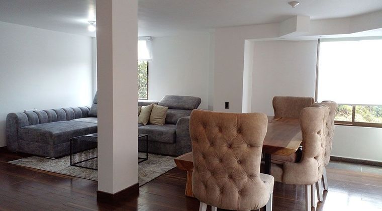 Apartamento Amoblado en arriendo cerca a colegios, fácil acceso a gran variedad de servicios complementarios y rutas de transporte publico. Piso en madera laminada, dos niveles, sala y comedor independiente, estar de tv, 3 alcobas con baño en la principal, jacuzzi, cocina integral cerrada tipo americano, alcoba y baño de servicio, balcón, terraza, y parqueaderos (1 cubierto). Edificio tradicional con ascensor, zonas verdes, vigilancia 24 horas, citofonia y circuito cerrado de tv. Inmuebles sujetos a verificación de disponibilidad.