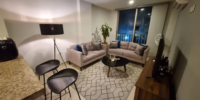 Apartamento en venta y arriendo en Villa Santos, ubicado en unidad cerrada cerca a centros comerciales, supermercados, droguerías, restaurantes, parques. Cuenta con 3 habitaciones, 3 baños, sala comedor, estar de tv, balcon, pisos en porcelanato, cocina integral con mesón en granito, zona de ropas, parqueadero, planta eléctrica total, vigilancia y porteria 24 horas.