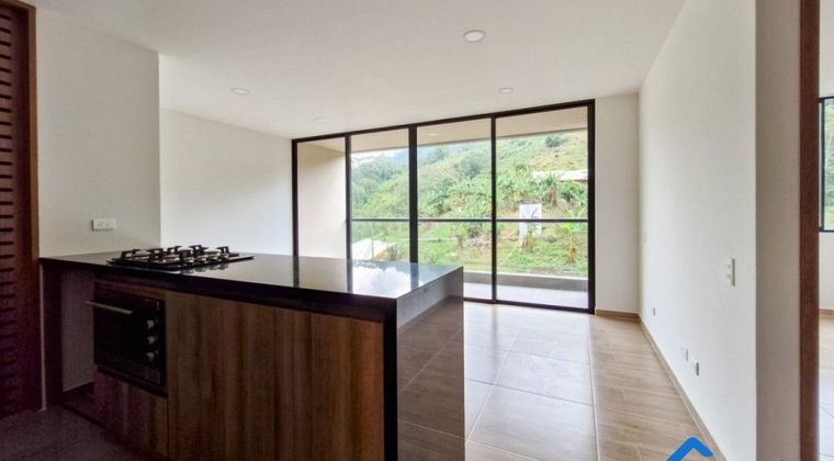 Apartamento de 67 m2 en venta en una zona campestre de Envigado. Dispone de 2 habitaciones con closet, 2 baños cabinados, cocina integral con barra americana, zona de lavandería, balcón, la unidad cuenta con portería las 24 horas del día, piscina, parqueaderos privados y de visitantes, zona de mascotas, juegos infantiles, en sector campestre, cercano a la escuela del Trianón.