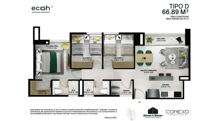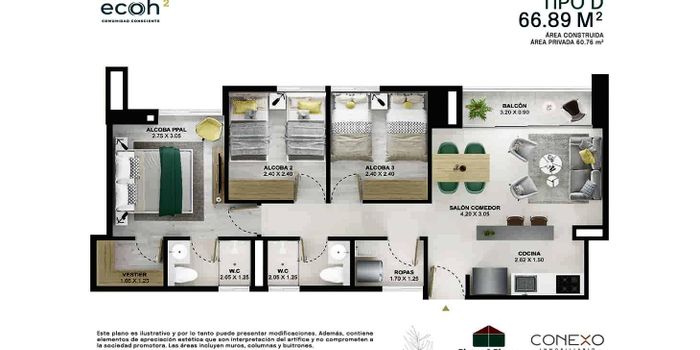 En venta cesión de derechos unidad Ecoh Sabaneta apartamento de 67 mt2, gran oportunidad de inversión y valorización. Precio de oportunidad por debajo de la constructora