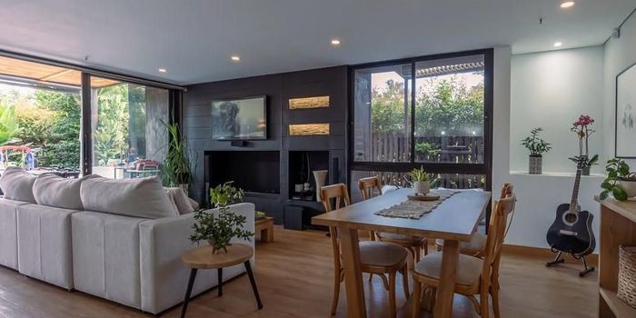 Apartamento en venta en unidad ubicada en sector tranquilo, campestre, poco flujo vehicular, cerca a centros comerciales, supemercados, tiendas y gran variedad de servicios complementarios de la zona. Cuenta con piso en madera, chimenea, sala comedor, 3 alcobas con baño en cada una y vestier en la principal, baño social, cocina integral abierta, cuarto útil, zona de ropas, terraza, jardín y parqueaderos independientes cubierto. El conjunto cuenta con ascensor, amplias zonas verdes, vigilancia y portería 24 horas, citofonia y circuito cerrado de tv. Inmuebles sujetos a verificación de disponibilidad