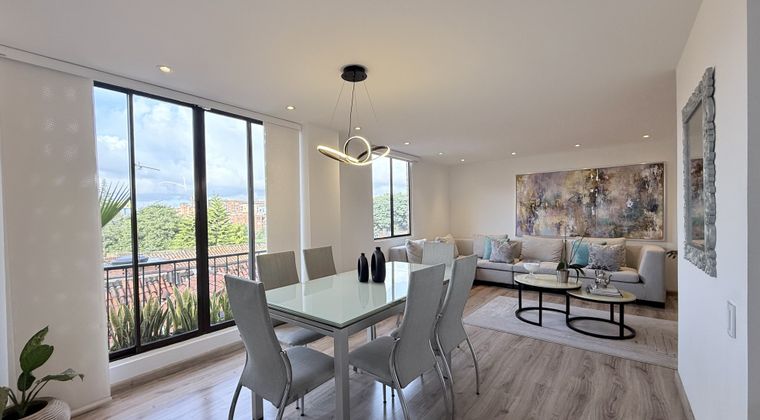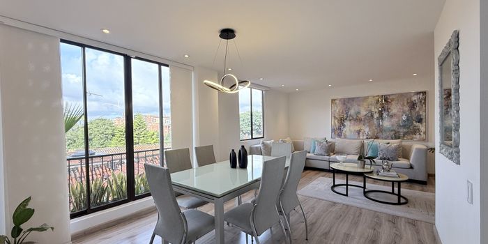 Amplio acogedor e iluminado apartamento duplex totalmente remodelado con excelentes acabados, área 141m, distribuidos así: Primer nivel: Dos salas, una con chimenea, la sala principal con licorera, comedor independiente con balcón, baño social, escaleras en madera con luces indirectas, cocina abierta con lavavajillas y herrajes especiales, zona de ropas independiente, depósito interior. Segundo nivel: 3 alcobas, holl de alcobas, estudio, baño de alcobas, alcoba principal con balcón vestier y baño. El apartamento cuenta con cortinas eléctricas y luces indirectas. Dos parqueaderos independientes y un depósito. El apartamento se encuentra ubicado en los pisos 4 y 5, sin ascensor, cuenta con una excelente luz natural la cual permite un ambiente cálido y natural con ladrillo a la vista, el edificio cuanta con premio arquitectónico. Ubicado en exclusivo sector de Belmira en estrato 4, está situado de norte a sur entre las calles 146 y 140, y de oriente a occidente entre las carreras 7