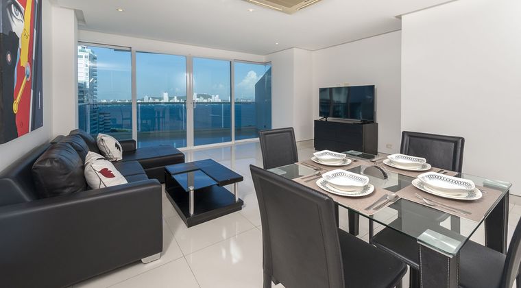Comodo y moderno apartamento con vista a la Bahia de Bocagrande. Area 74 M2 Aprox., Un Solo Piso, Salón comedor, cocina, baño social, balcón con terraza, alcoba ppal con baño y closet. Incluye un garaje y 2 depósitos. DISPONIBLE PARA ARRIENDO Valor arriendo 3 millones, incluida admon