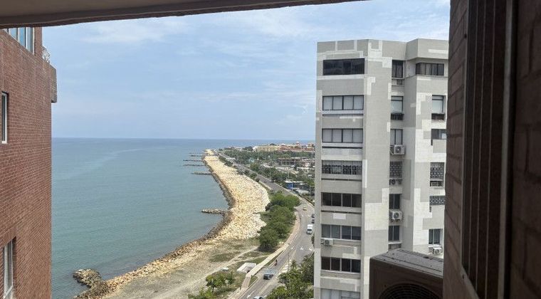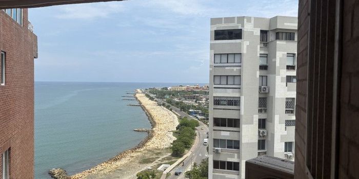 Edificio Puerto Azul, Bocagrande. 117m2, Piso 11, exterior, linda vista a la bahía y al mar. 3 alcobas o 2 y estudio, 3 baños. Sala comedorCBS, cocina abierta y Zona lavandería. Cuarto y baño de servicio. Un parqueadero Edificio con portería 24 horas, piscina con vista al mar