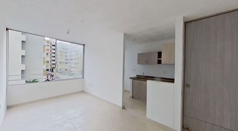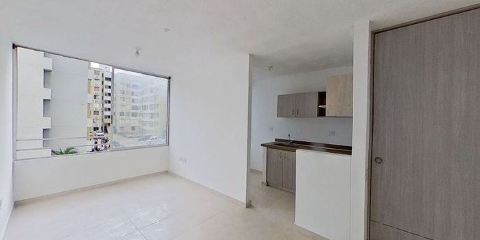 956FR8073 Bonito apartamento de 50 m², ubicado en el piso 3, torre 1, con 2 habitaciones, 1 baño, cocina integral y estudio. Cuenta con ascensor, gas natural y garaje comunal. Pisos en cerámica, estrato 3, 7 años de antigüedad, excelente estado y listo para habitar. No tiene balcón, terraza ni parqueadero privado. Zona tranquila, segura y con fácil acceso a transporte y servicios