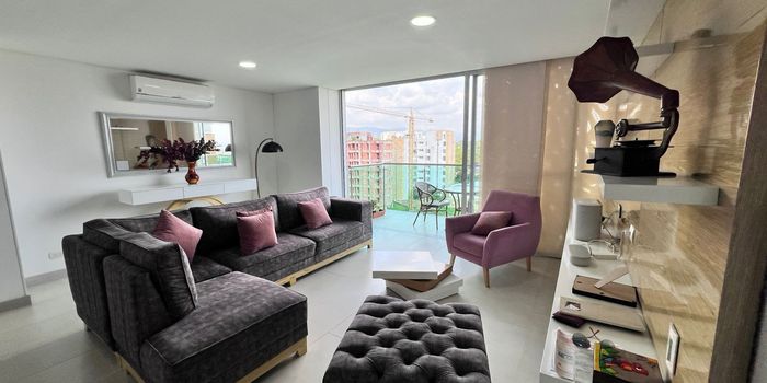 Hermoso apartamento de lujo con acabados modernos con espacios funcionales de área 137mt2 con amplio balcón con vista a los farallones. Ubicado piso 10 Habitación principal con vidrios panorámicos Closets, aire acondicionado 2 habitaciones aire acondicionado, closets Cocina abierta y moderna 5 baños 3 parqueaderos Depósito Piscina niños adultos climatizada Sauna Jacuzzi Gimnasio Salón social BBQ Amplias zonas verdes Zona infantil