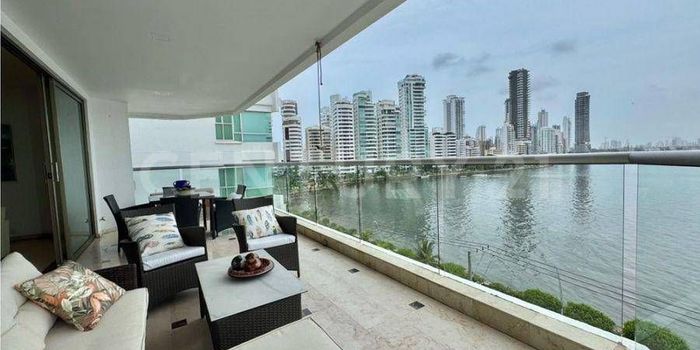Venta de espectacular apartamento amoblado en Cartagena, en el sector de Castillo Grande. Tiene tres cómodas habitaciones, todas con baño y vestier, amplia zona social que se integra a un gran balcón con una espectacular vista sobre la bahía, tiene cuarto de la empleada con baño y dos parqueaderos. El apartamento está totalmente dotado con muebles y electrodomésticos de lujo. El edifico está en unidad cerrada con vigilancia las 24 horas y parqueaderos de visitantes, cuenta con piscina, jacuzzi, gimnasio, salón social y amplias zonas verdes y de juegos infantiles. El apartamento está ubicado en una zona estratégica, con excelentes vías de acceso y con facilidad de transporte público. Cerca se encuentran centros comerciales, supermercados, zonas de restaurantes, colegios, universidades, hoteles y hospitales.