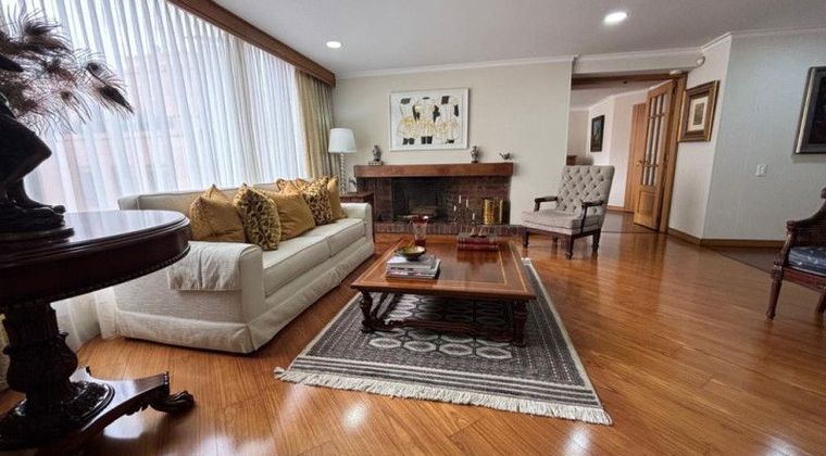APARTAMENTO con la posibilidad de una tercera habitación en este momento hay 2 habitaciones, perfectamente se puede hacer el cerramiento en el espacio que hay para una tercera habitación, amplio estudio con sistema de sonido , cocina cerrada, cuarto y baño de servicio, patio de ropas, 2 garajes independientes y depósito. Ventanería antiruido, chimena. Informes: Claudia Rugeles