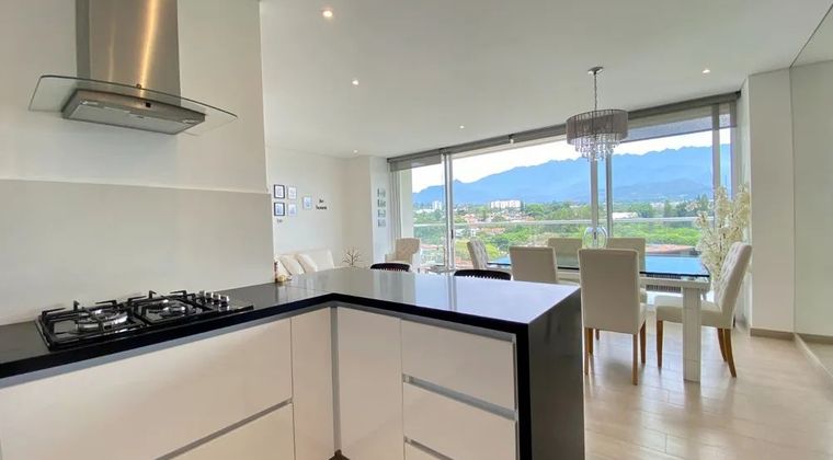 Para mayor información escribanos vía WhatsApp y uno de nuestros agentes inmobiliarios te atenderá. Si eres amante de los paisajes y atardeceres, este apartamento es ideal para ti. Venta de hermoso apartamento con vista panorámica hacia la reserva de los farallones de Cali, vive hermosos atardeceres desde tu amplio balcón, piso 8vo con ascensor, parqueo doble en paralelo en sótano, 141 m2 de área, cocina tipo americano, sala comedor, baño social, acabados de lujo, zona de oficios independiente, sala de tv o estudio, 3 alcobas, (2 con baño privado) principal con hall y vestier. El conjunto cuenta con piscina para adultos y niños, zona de reserva natural, senderos, último piso con bar, juegos, terraza con excelente vista.