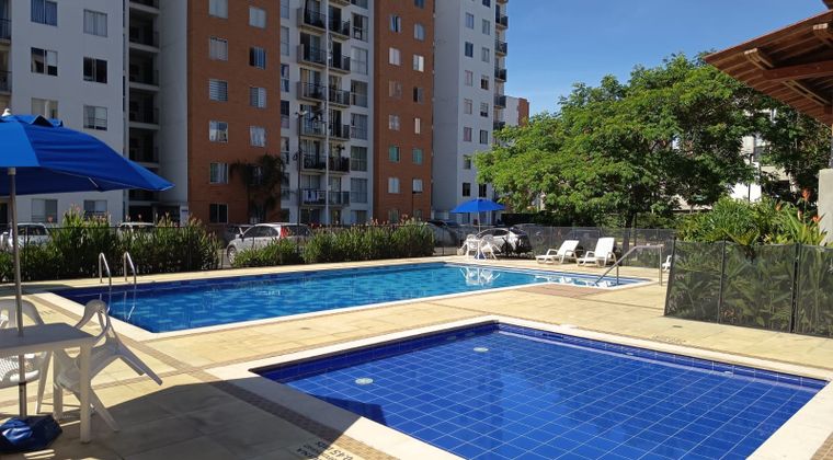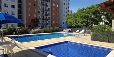 Hermoso apartamento en Segundo piso con ascensor ideal para inversión debido a que está rentado con un area de 60 mts. consta de 3 habitaciones la principal con baño y Vestier, sala comedor, baño social, cocina integral completa meson con superficie en quarzon petrolificado junto a zona de oficios con soporte de ropas, calentador, balcón con vista externa. en las zonas comunes están los salones sociales amplios y cubierto de buena altura, piscina para adultos y niños, cancha de microfutbol, zona infantil, agradables zonas verdes y arboles que brindan frescura, vigilancia las 24 horas.